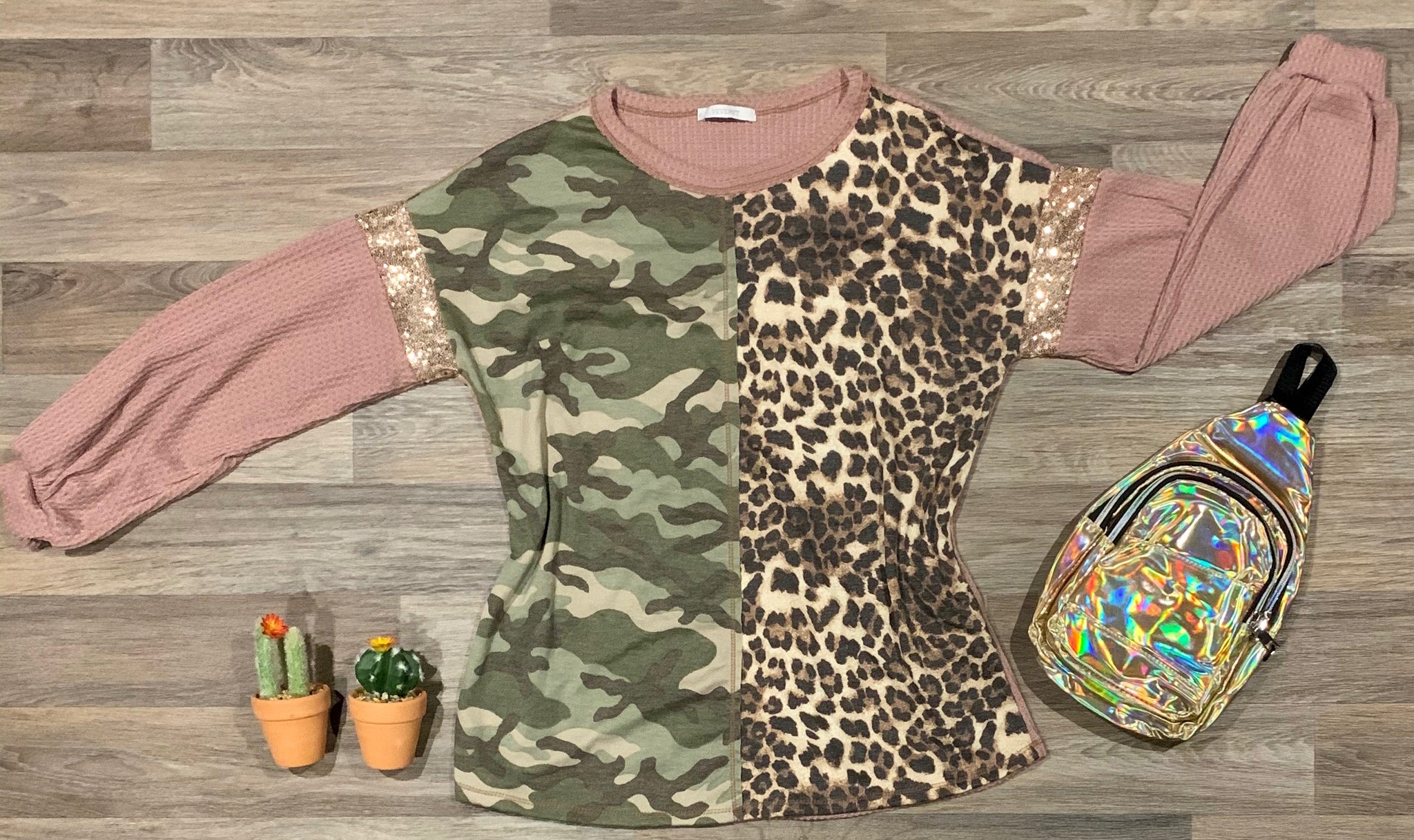 Cheetah Camo Rose Gold Long Sleeve Shirt- Missy Sizes